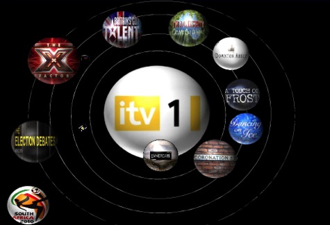 …in orbit are the top ten shows on ITV1 for 2010 in terms of average audience, with the XFactor the biggest in terms of audience , but Emmerdale viewers are the most loyal to ITV1 and therefore most in its gravitational pull.